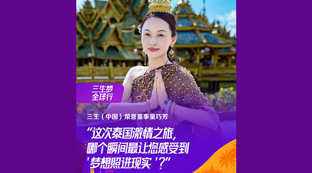 “穿上泰式传统服饰、站在暹罗古城千年佛塔前,我真正感受到:原来努力拼事业的自己,可以活得这么美、这么有尊严 ”——三生(中国)荣誉董事童巧芳