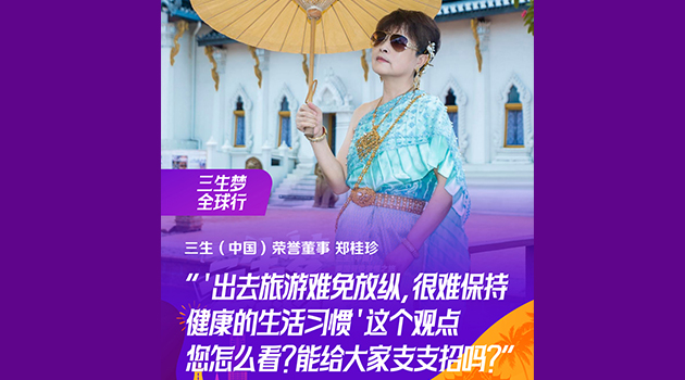 “这恰恰就是三生人和普通游客最不一样的地方。我们懂得借产品的力量来做平衡,一趟旅行下来,反而收获了健康的升华。”——三生(中国)荣誉董事郑桂珍