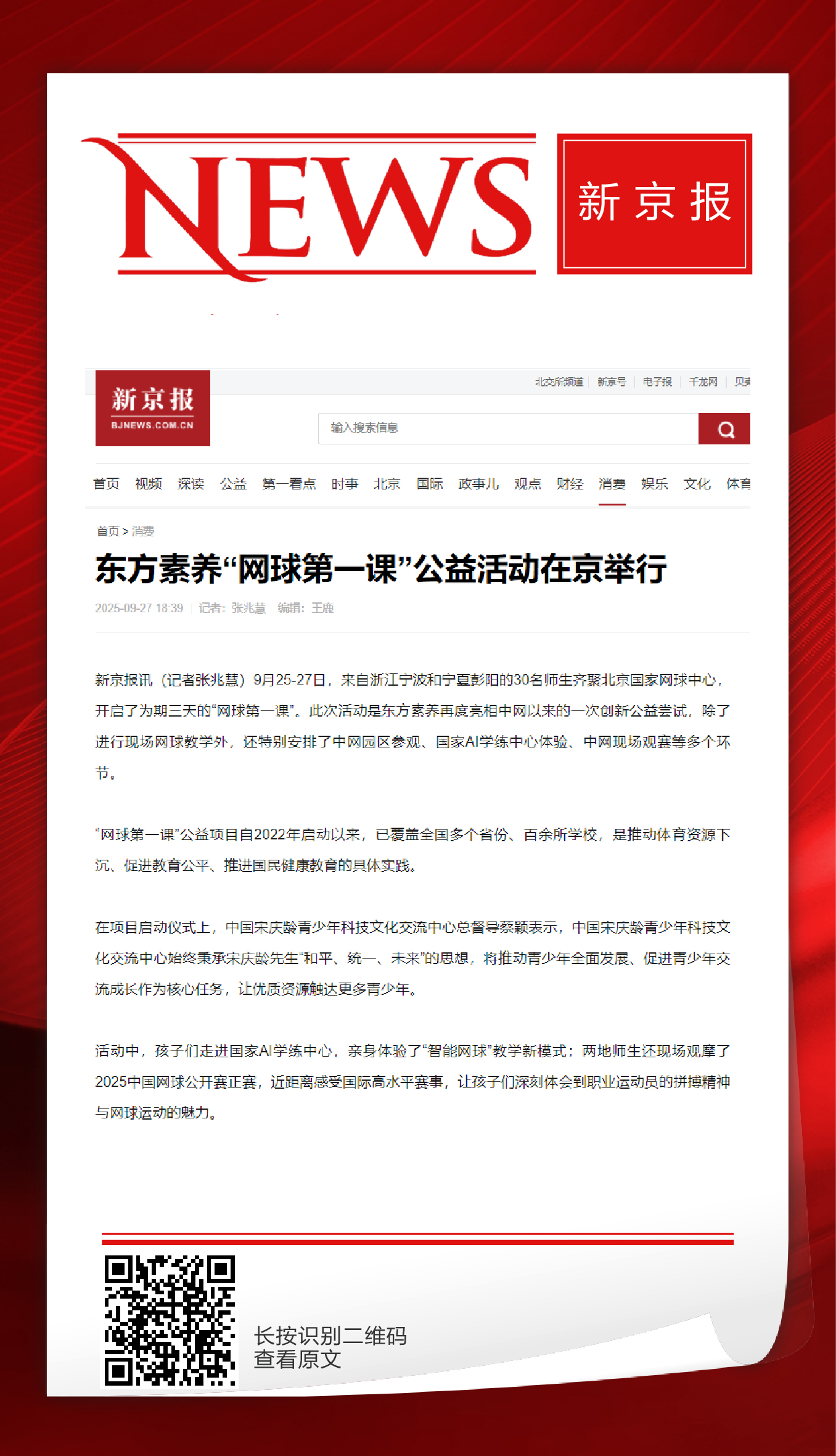 新京报:东方素养”网球第一课“公益活动在京举行