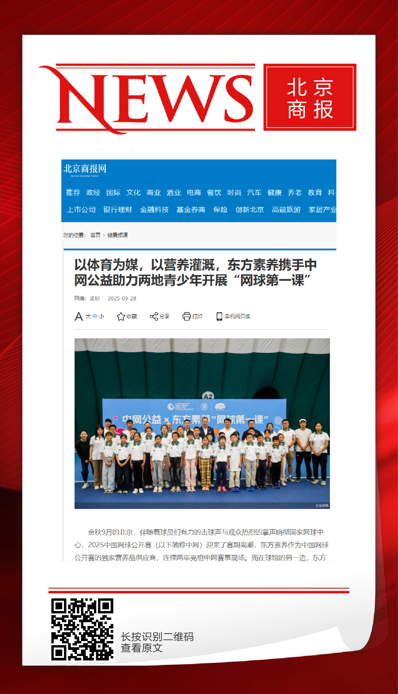 北京商报:以体育为媒,以营养灌溉,东方素养携手中网公益助力两地青少年开展“网球第一课"