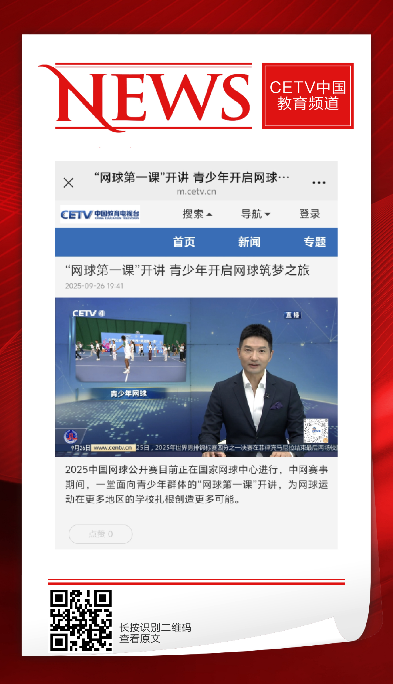 CETV中国教育频道:”网球第一课“开讲,青少年开启网球筑梦之旅