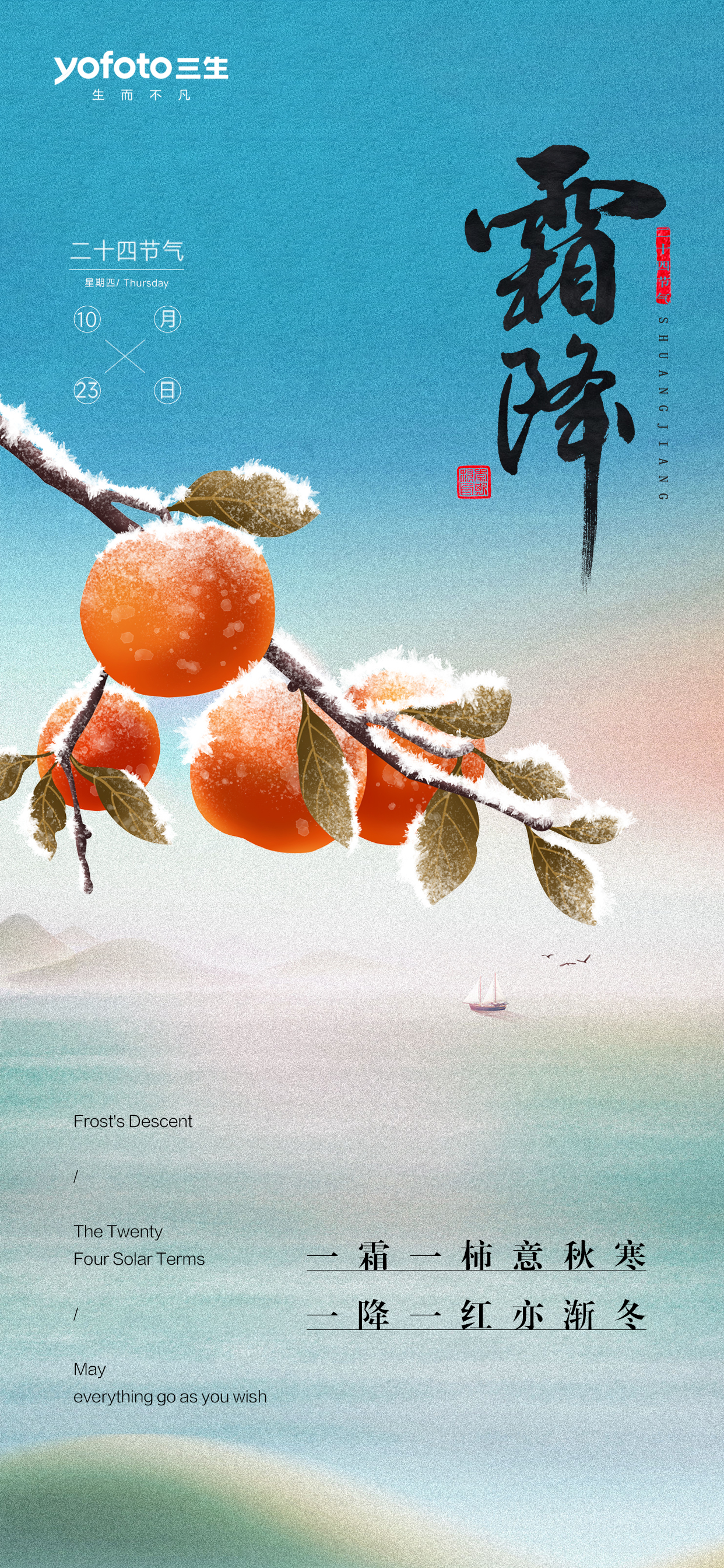 一霜一柿意秋寒
