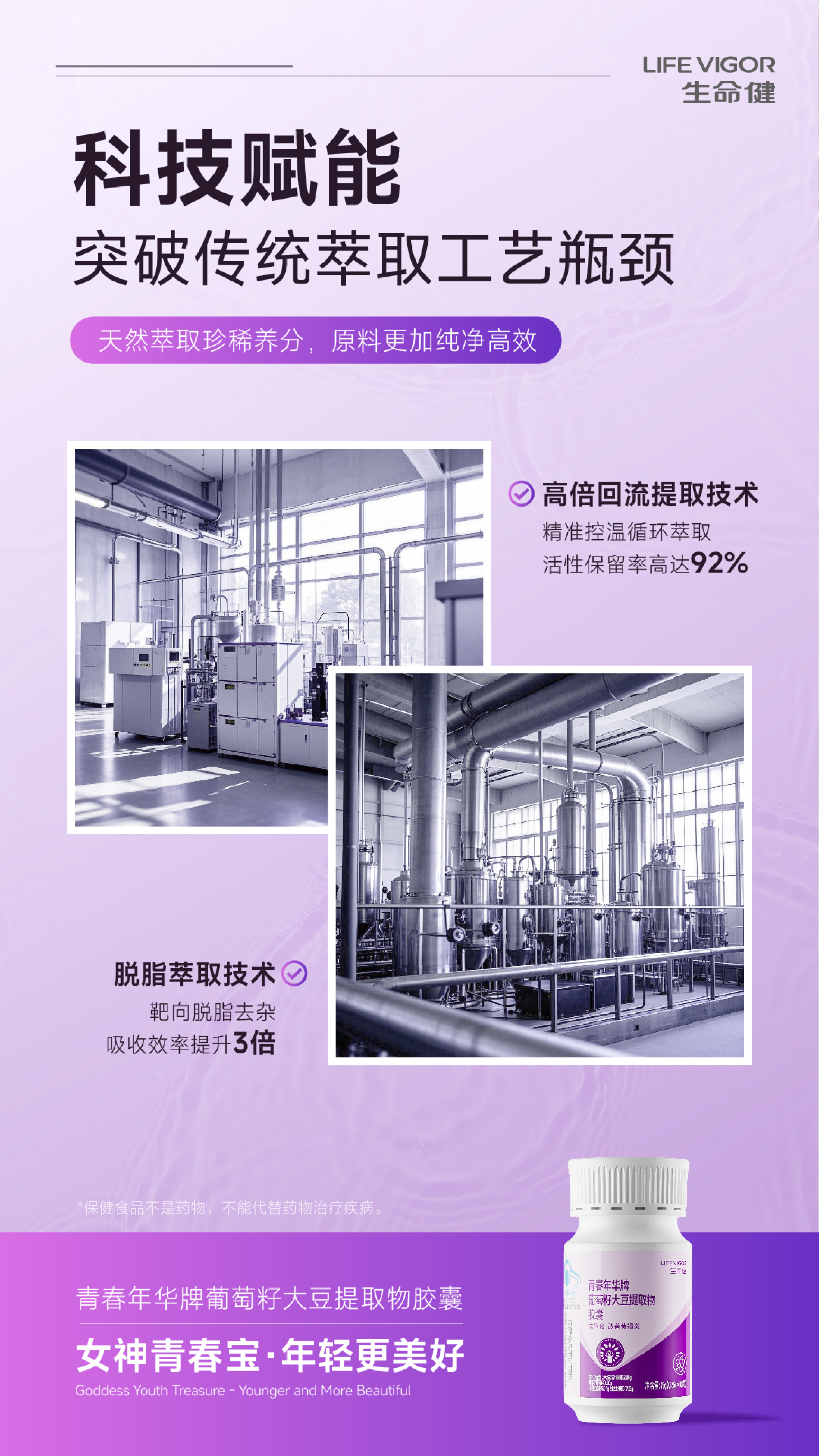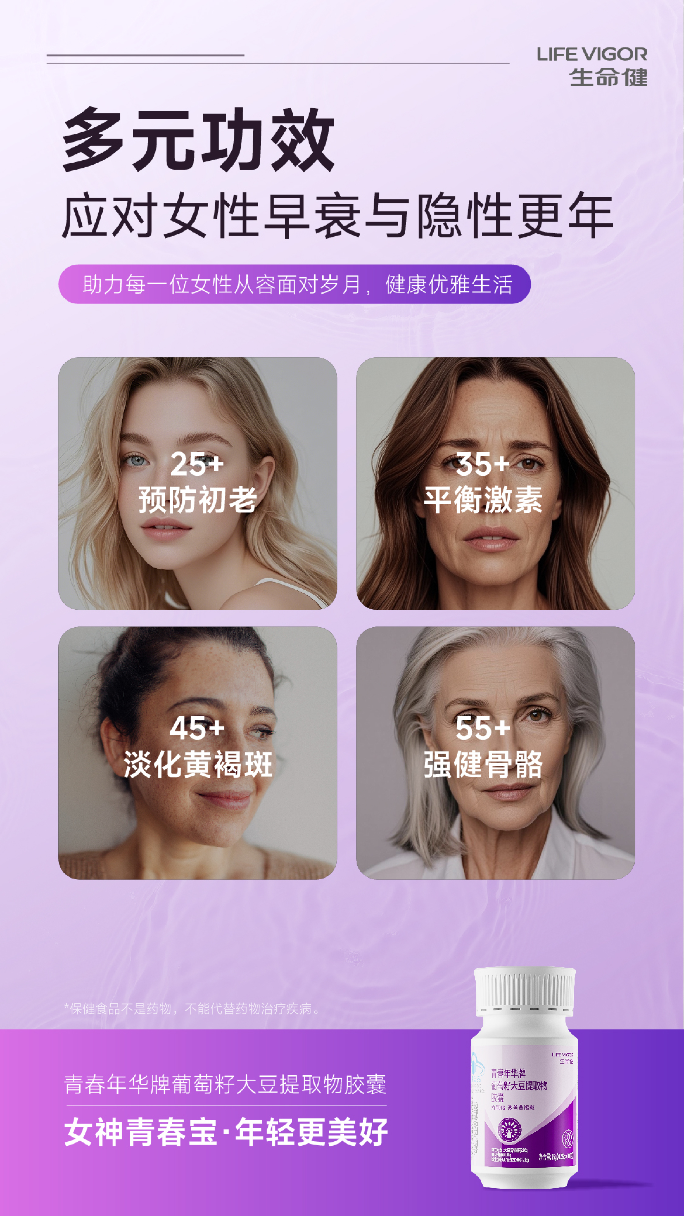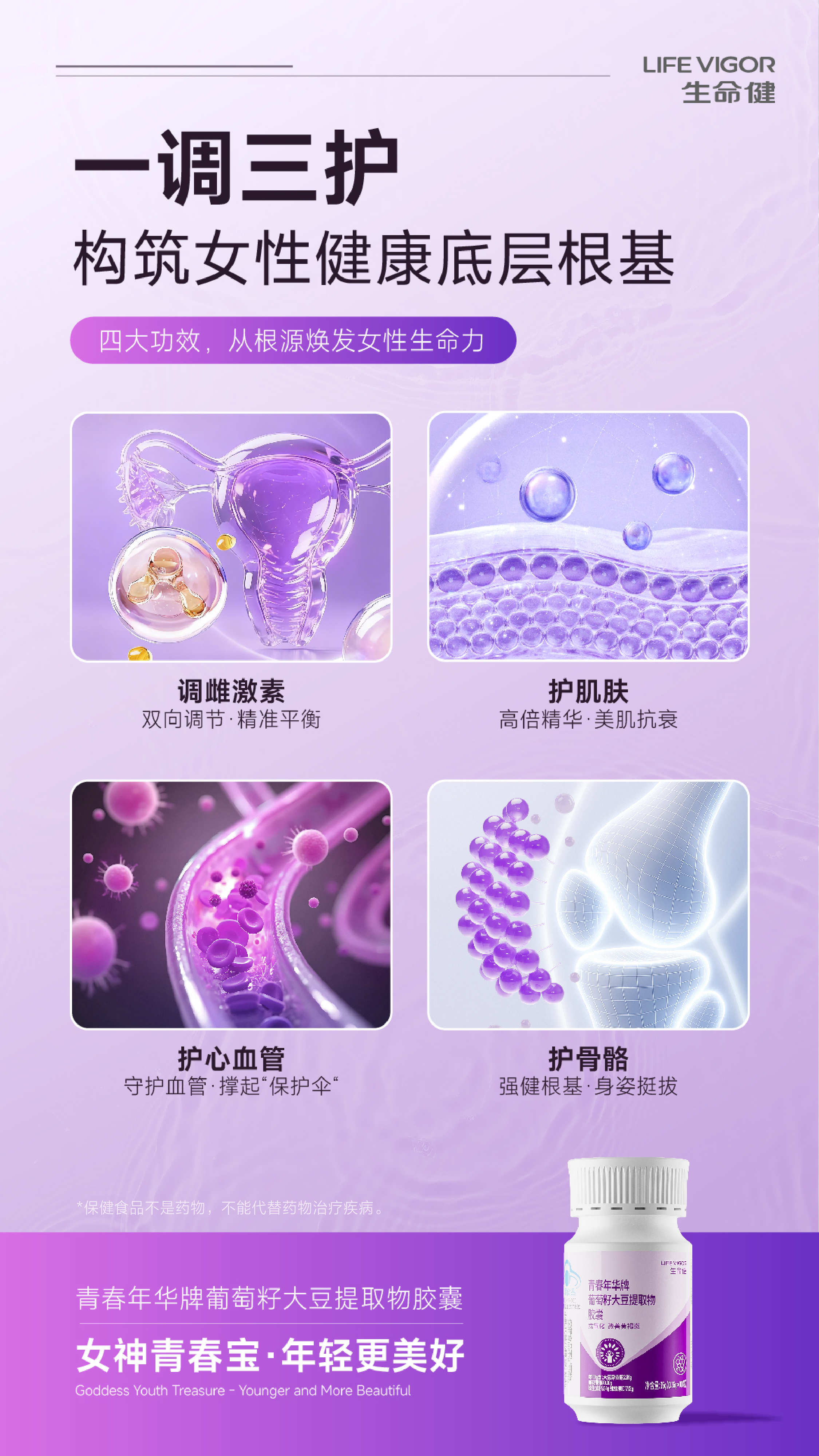 生命健青春年华牌葡萄籽大豆提取物胶囊:女神青春宝,年轻更美好!抗氧化,改善黄褐斑!