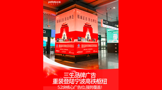 三生品牌广告,重装登陆宁波高铁枢纽,52块核心广告位,强势覆盖!