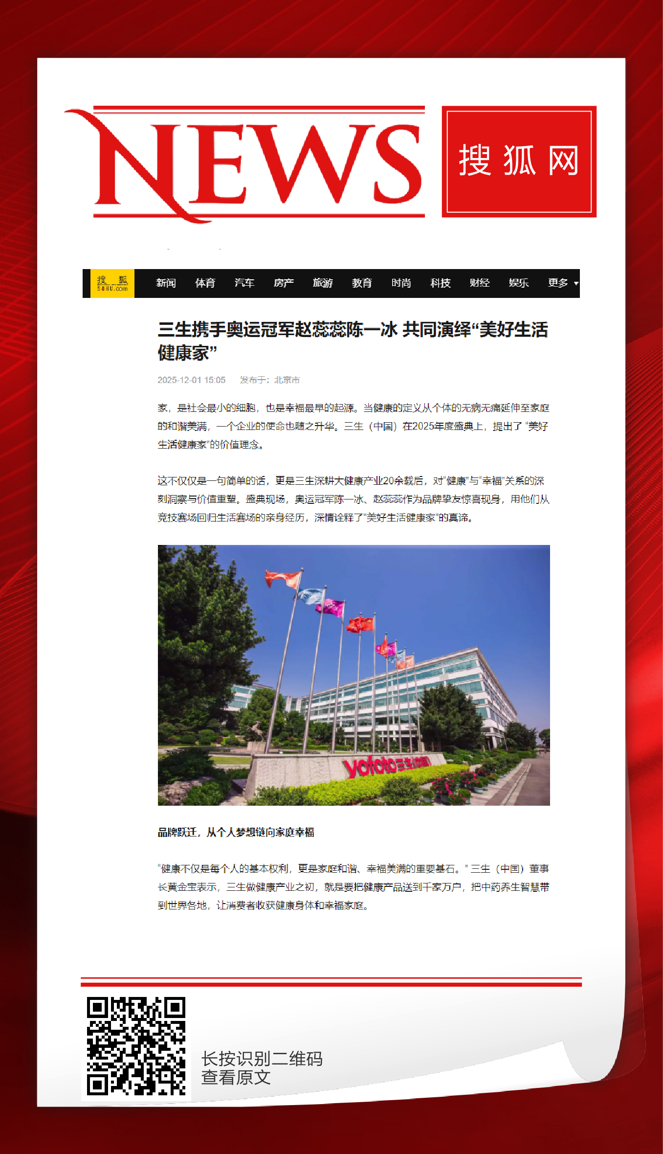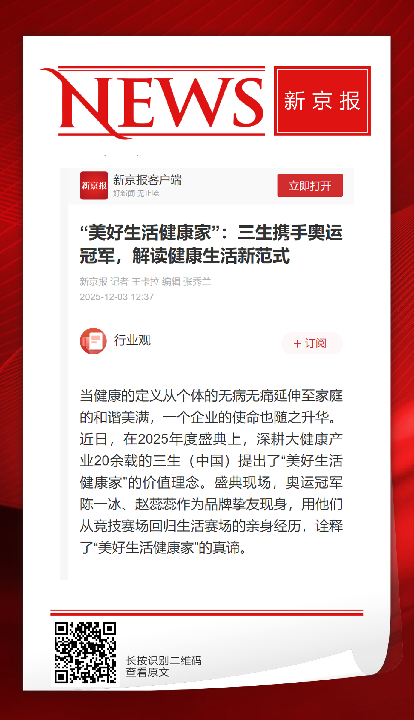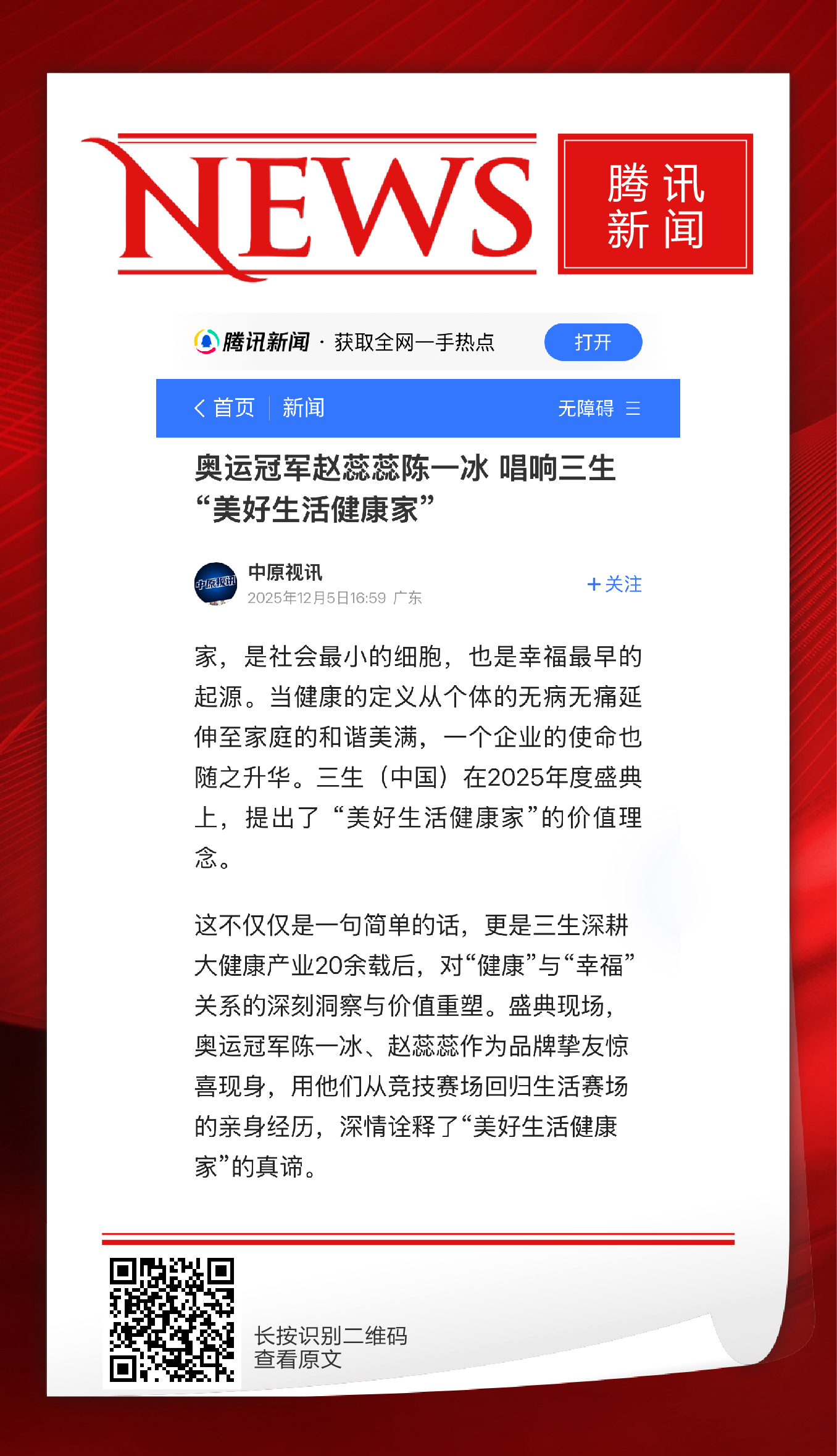 奥运冠军赵蕊蕊陈一冰,唱响三生“美好生活健康家”