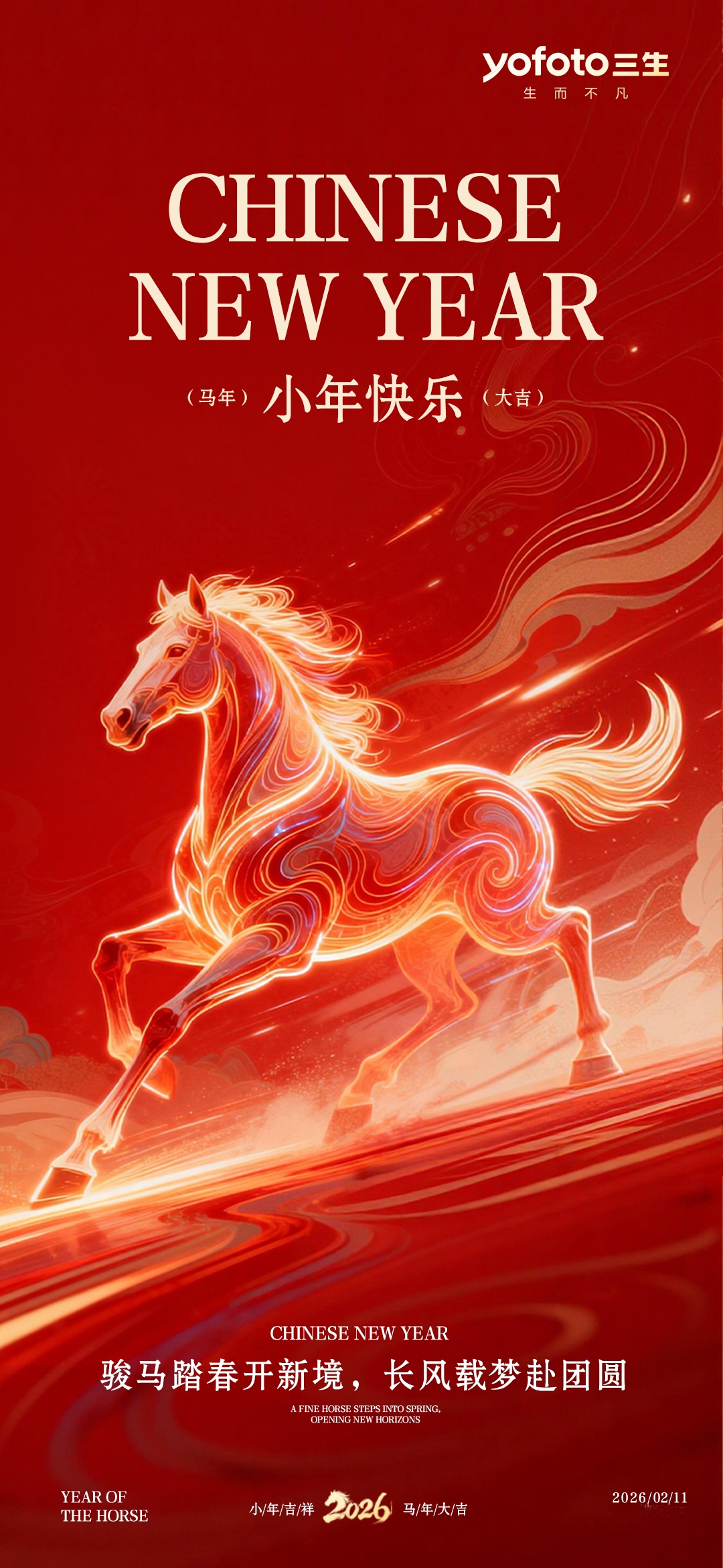 骏马踏春开新境,长风载梦赴团圆。小年快乐,马年大吉!