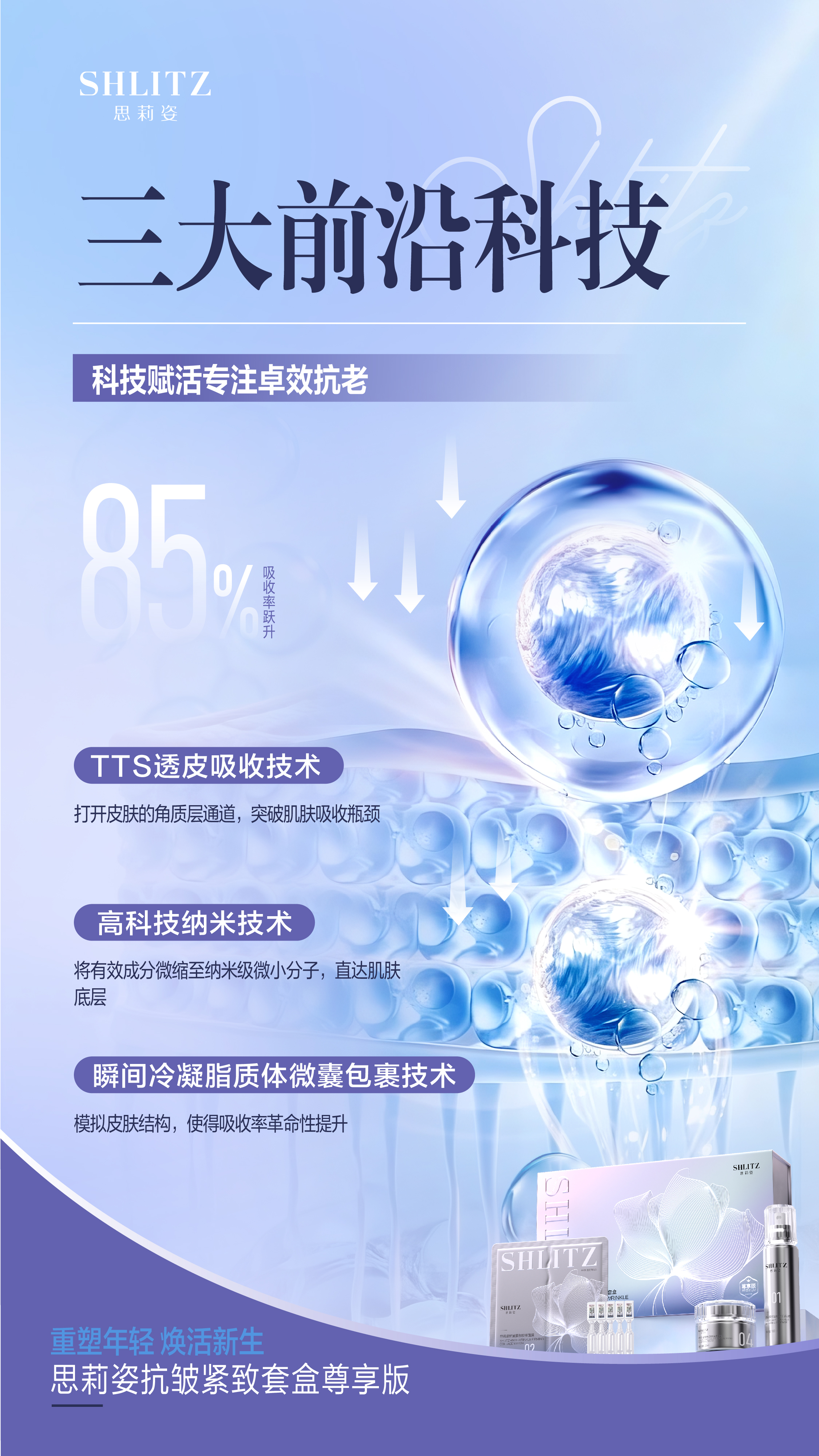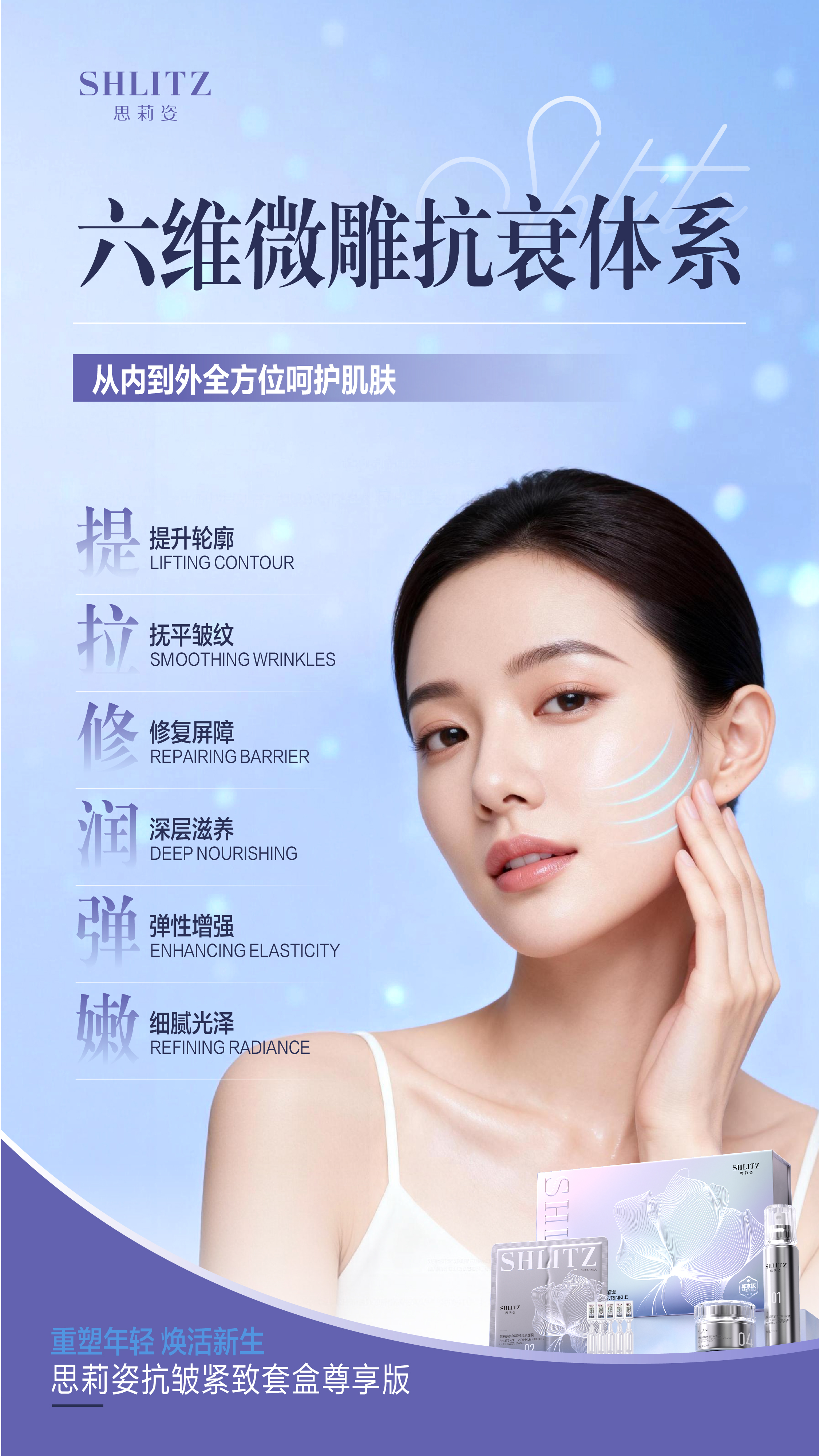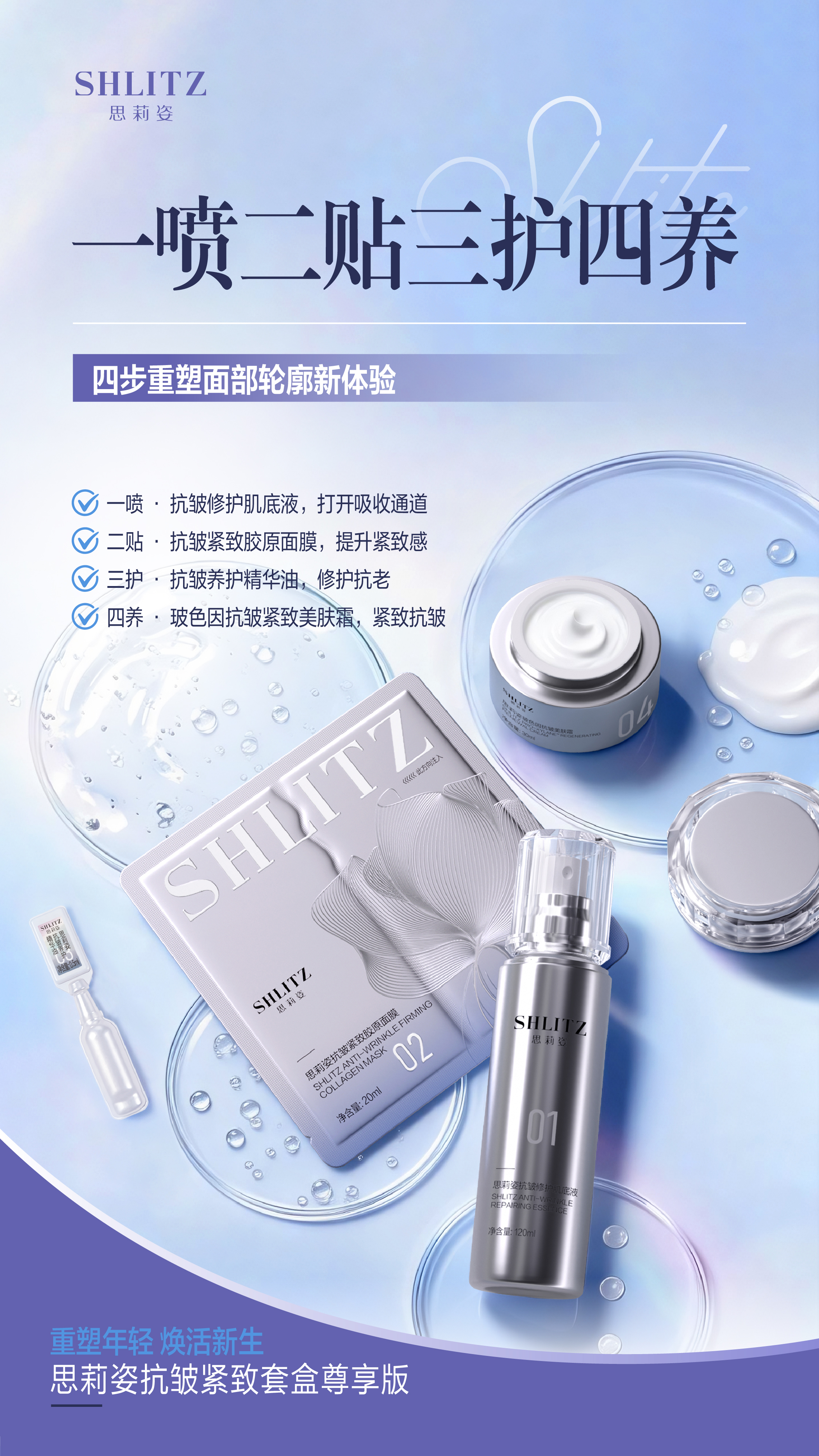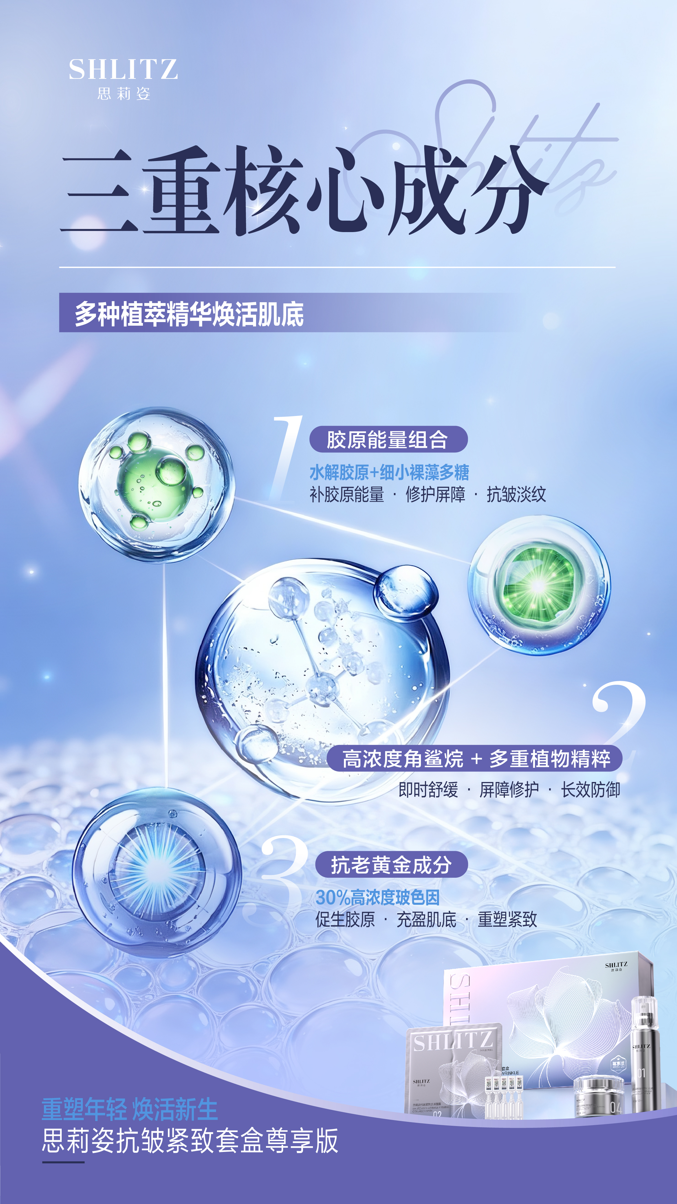思莉姿抗皱紧致套盒尊享版,重塑年轻,焕活新生!微整级护肤体验 · 无创逆龄新方案,打造“水膜绷带术”。