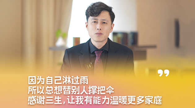 程显志:“因为我自己淋过雨,知道那种世态炎凉的滋味,所以总想替更别人撑把伞,很感谢这份事业,让我有能力去温暖更多家庭。”一起听听三生(中国)荣誉董事程显志分享他与三生的温暖故事