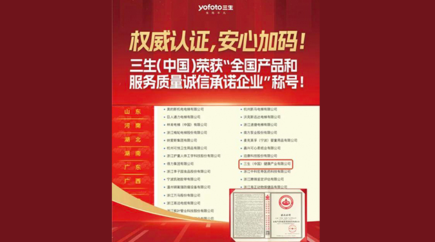 权威认证,安心加码!三生(中国)荣获“全国产品和服务质量诚信承诺企业”称号!