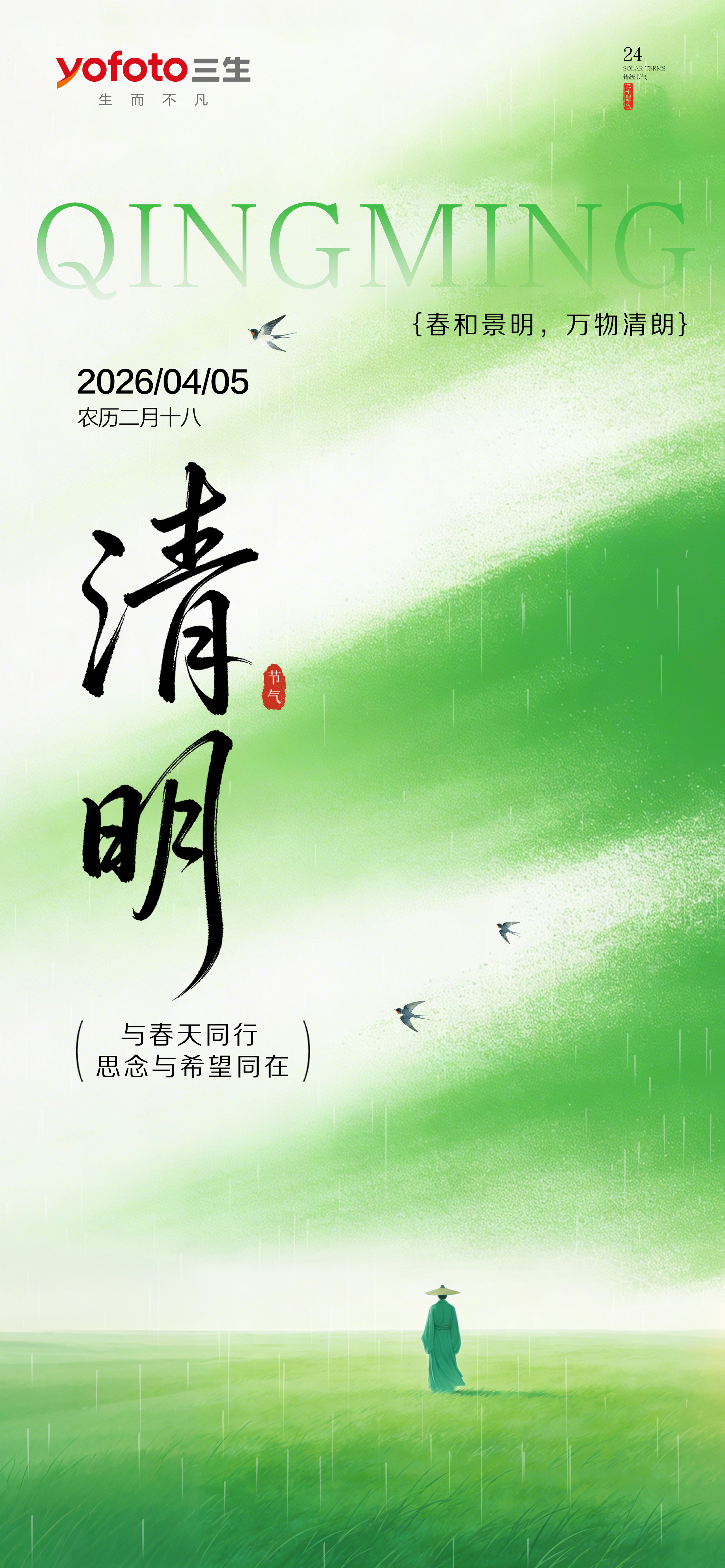人间四月芳菲始,春归清明雨是时。念过往,敬远方,从容向前!